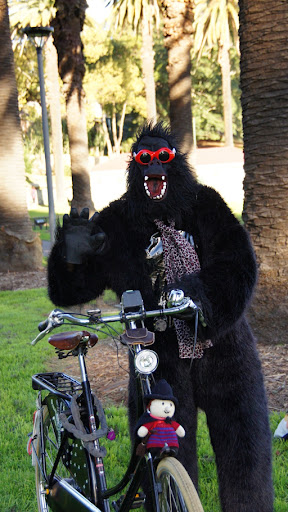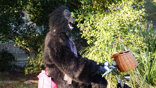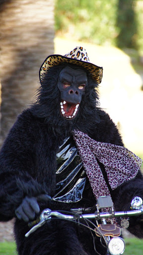 Last weekend I was a gorillagram as a surprise for my neice's 18th birthday. It was a hit. When I hired the costume, I found out I had it for the entire weekend. So what else could we do but GORILLA BIKE RIDES AROUND THE PARK!!!