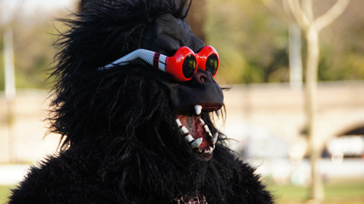 All that bike riding made this gorilla more than a little hungry...